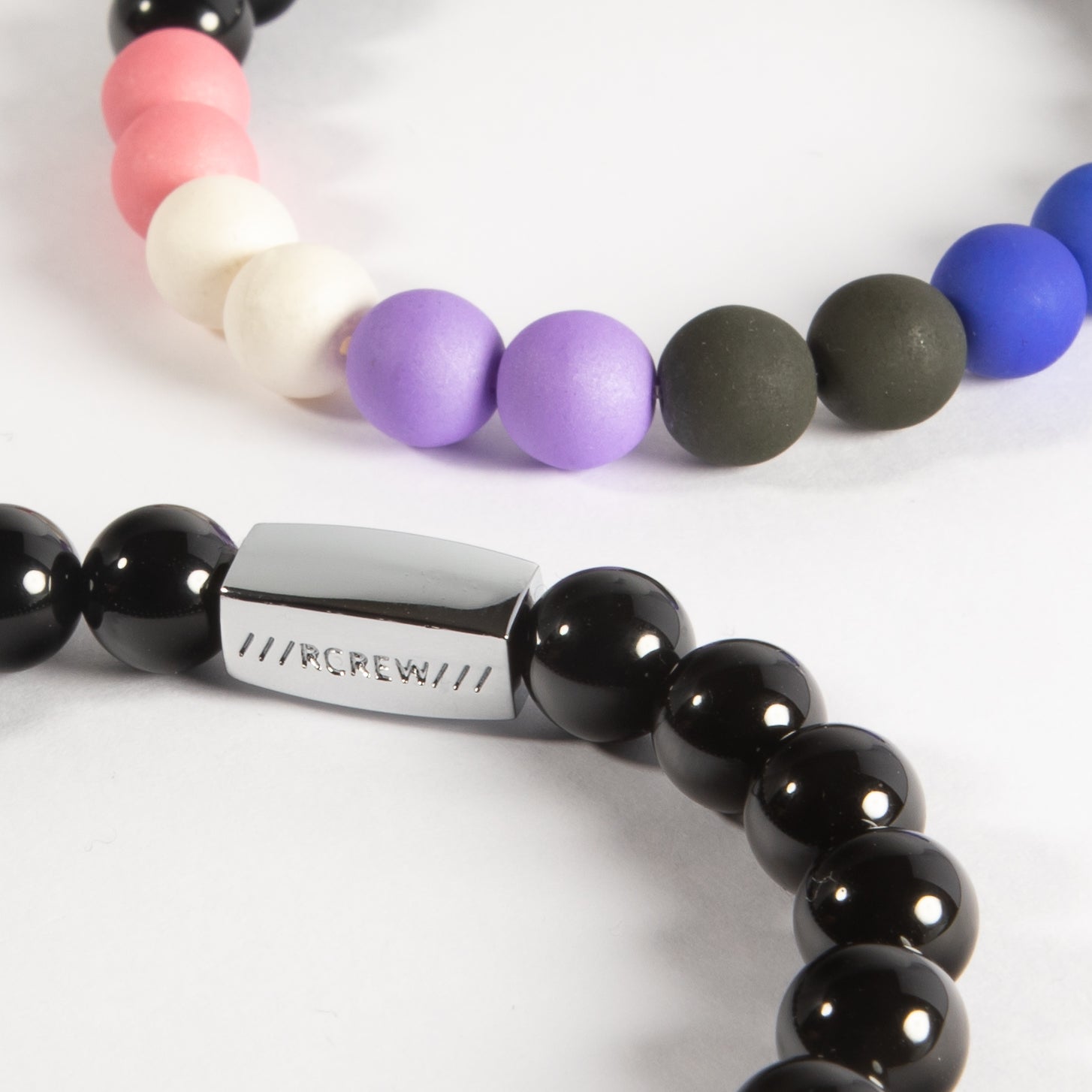 The Bold Gender Fluid Bracelet translates the colours of the Gender Fluid Pride Flag into a wearable signal. Pink, white, purple, black, and blue beads, grounded by genuine black agate quartz, create a bracelet that represents the full spectrum of gender experience.